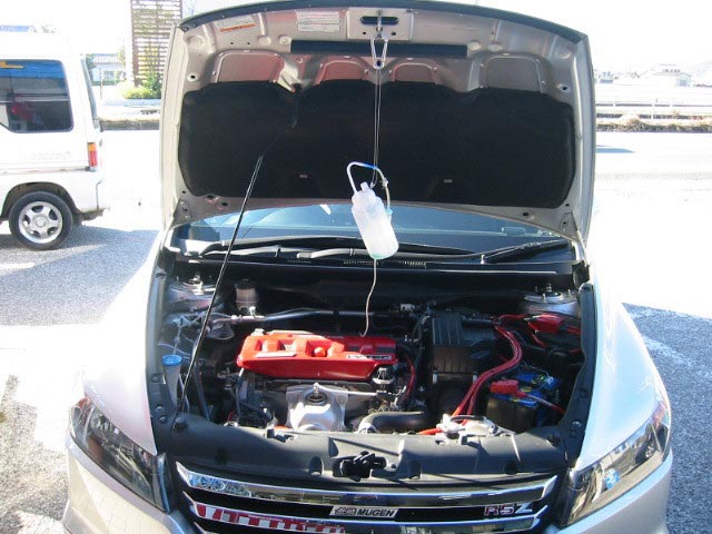 点滴のような専用タンクからRECSをインマニに吸わせ、インマニ・燃焼室を