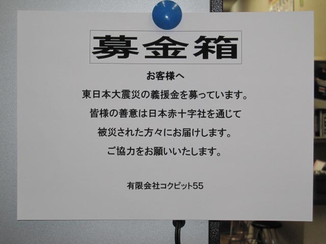 と社内で話し合い募金箱を設置しました。