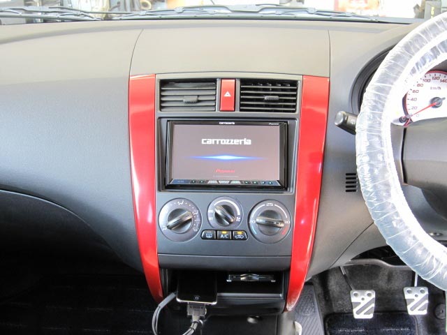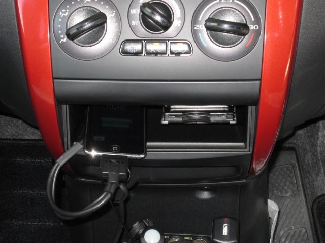 同時取付のiPod用コードとETCは下段のポケットに取付して使いやすさを重視しました。