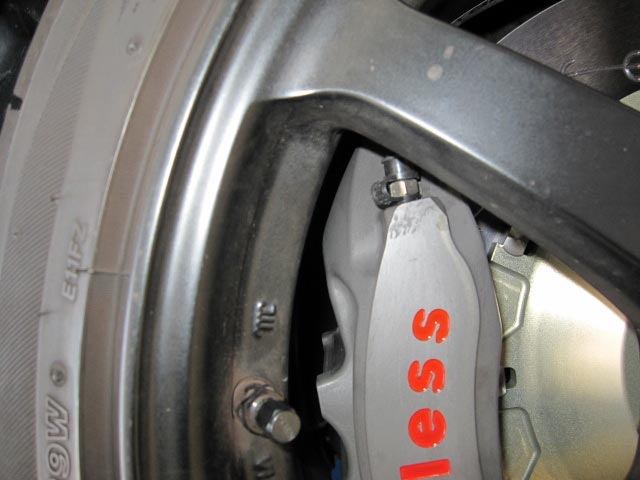 装着するとホイールいっぱいのローターで、キャリパーとホイールの隙間は数ミリぐらいです。