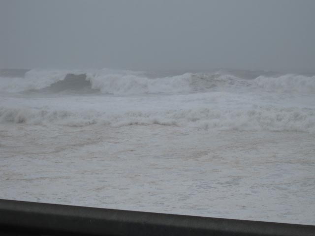 いつもの太平洋沿いの通勤路も、ここ数年見たことのない様な風と高波!。