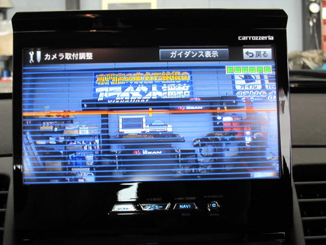 (中段左) 取付後いろんな機能を使う上で重要なカメラの位置を調整。このあと実走行でさらに微調整。