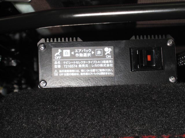 助手席にはレカロオリジナルのナビシートセレクターを取付して、エアバッグも