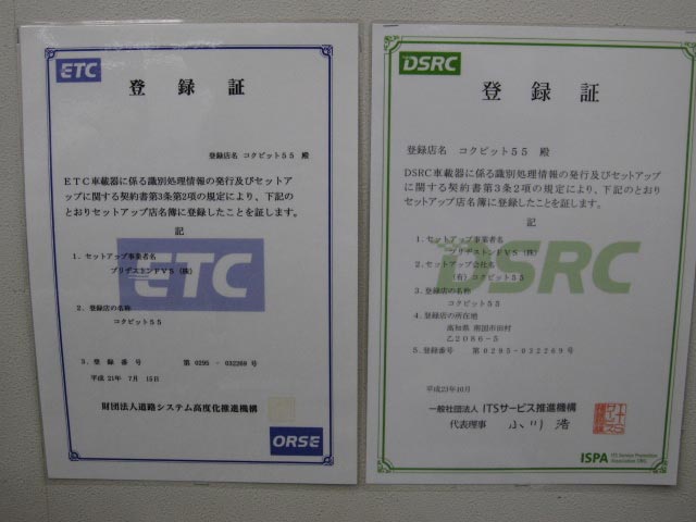 今回、最近問い合わせが多くなってきた「DSRC」のセットアップ店に登録しました。