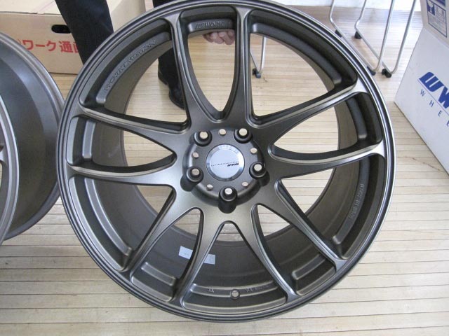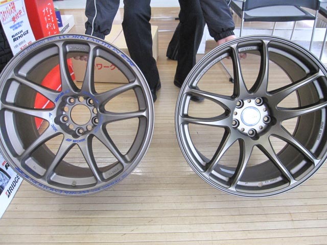 今日は、ホイールメーカーのWORK(ワーク)の担当営業さんが、新作のサンプルを見せに来てくれました。