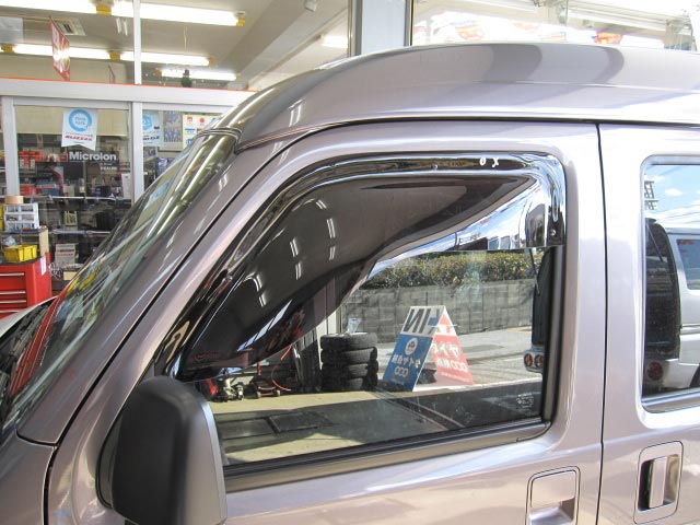 雨の日に重宝する、OXバイザー。ドアミラーも見やすいハーフタイプです。