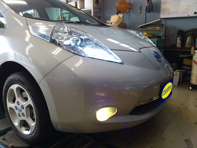 先日、TVキットでご紹介したリーフに、早速HIDのカスタマイズ!