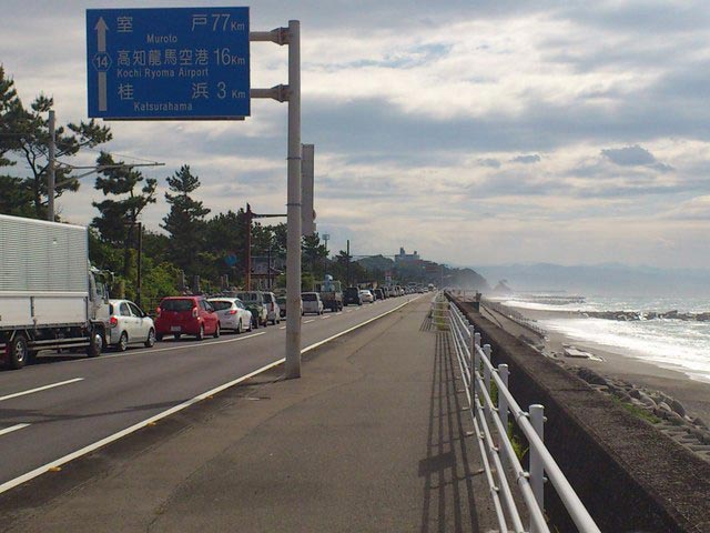 ところが・・・いつも通勤に使っている桂浜近くの海岸線に出てみると