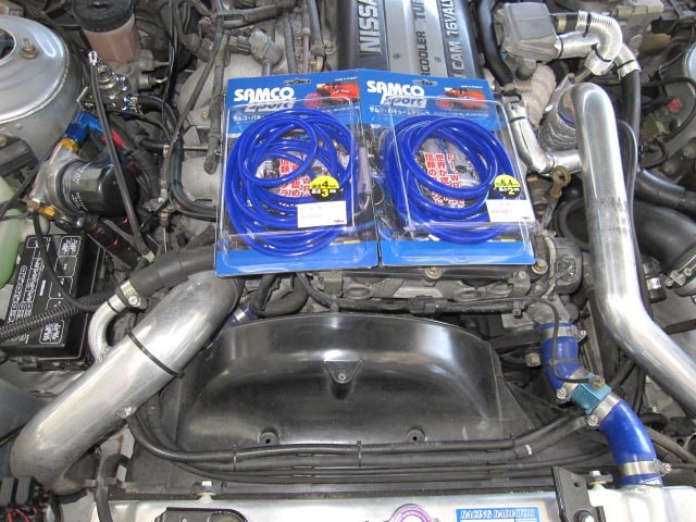 まずエンジンルーム内のバキュームホースをサムコシリコンホース(ブルー)に変更。