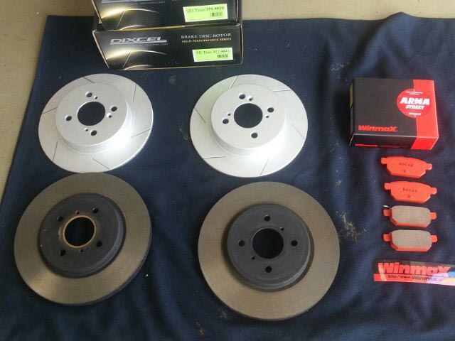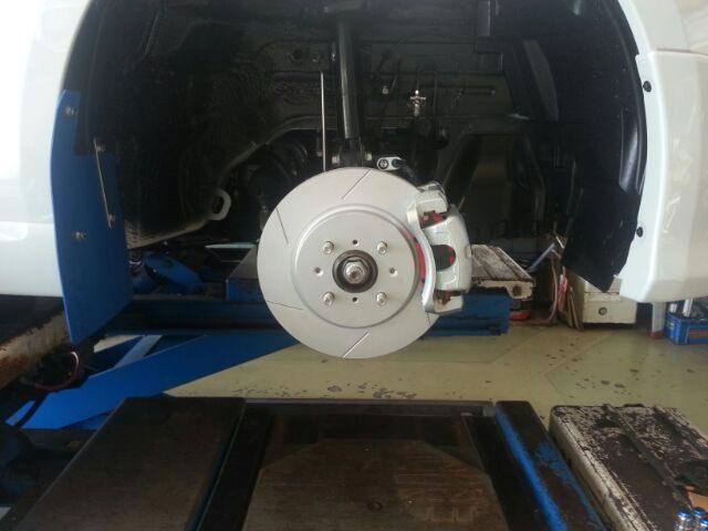 まずブレーキ関係は、当店人気のスリットローター「ディクセルのSDローター」を取り付け。
