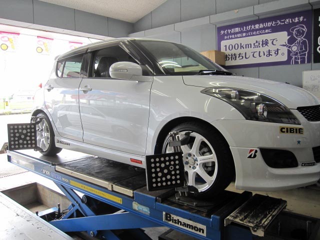 先日取り付けたスプリングの能力を100%引き出し、本来のスイフトらしさを発揮します!