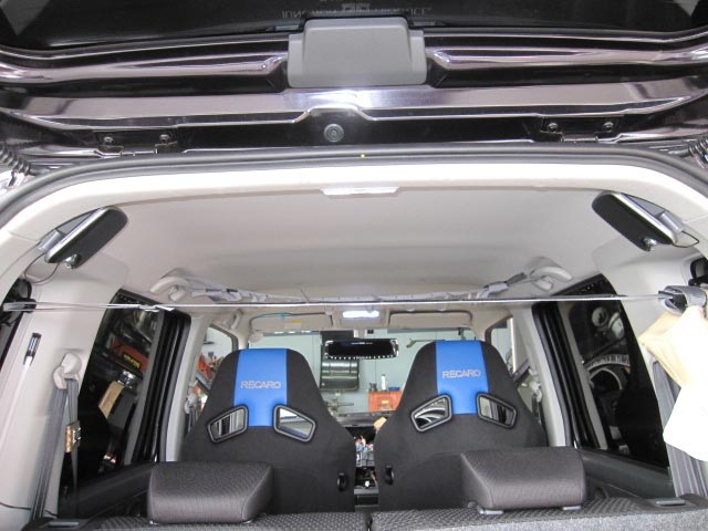 お客様が釣り好きなので、釣り竿がよりたくさん積み込めるように天井に沿わせて設置しました。