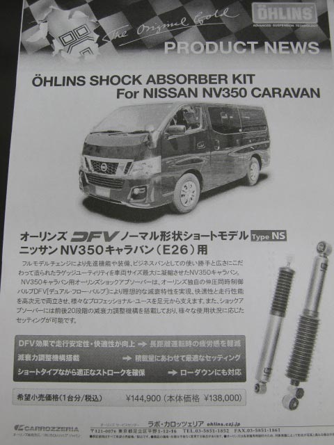 「ニッサンNV350キャラバン(E26)用 オーリンズDFVダンパー」