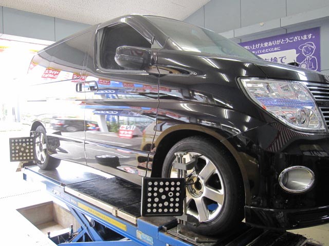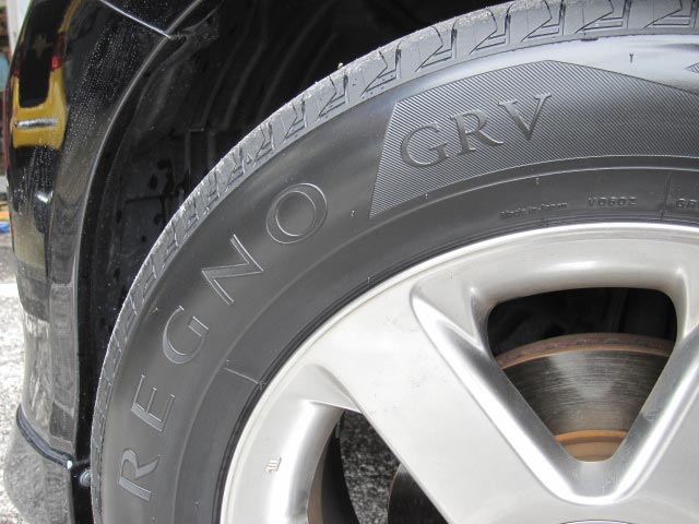 最後に、ミニバンには一押しのタイヤ「REGNO GRV」に交換。アライメントも調整し、快適なエルグランドの完成です。