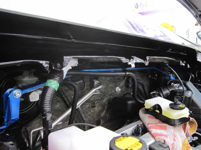 こちらもワイパー下のフロントカウル(プラスチックのカバー)を外すついでに、「ストラットバー」も同時に取り付けしました。