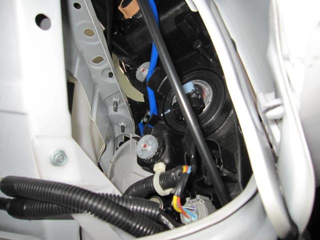 ティアナはホンダのフィットなどと同じく、画像のようにフェンダー内のカバーを外して内側から交換する方法でした。