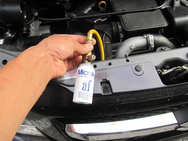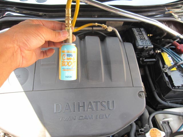 こちらも人気の高いニューテックエアコン添加剤「CompBOOST NC-200」を施工。