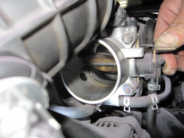 スロットルバタフライ付近も結構汚れていましたので、キレイに清掃しました。