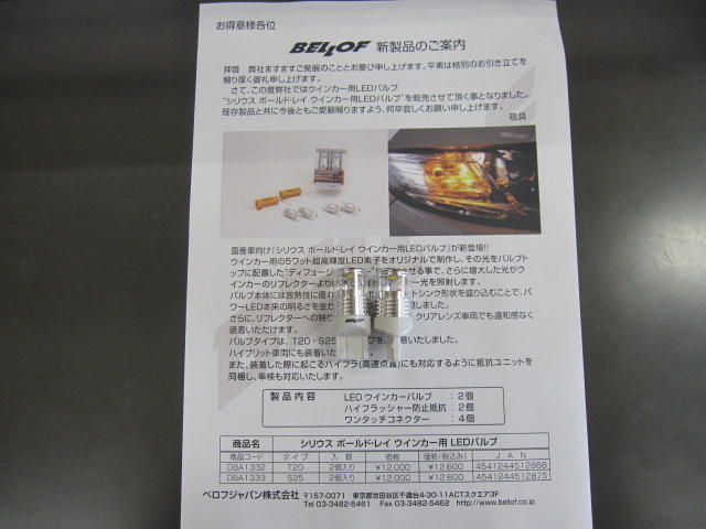(新型ウインカー用LEDはベロフのホームページにもまだ掲載されていません。ご近所の方には言わないように・・・(^.^))