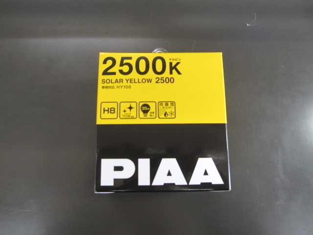 今回は夜間の視界向上のため、PIAAのイエローハロゲンバルブ「ソーラーイエロー2500」を取り付けしました。