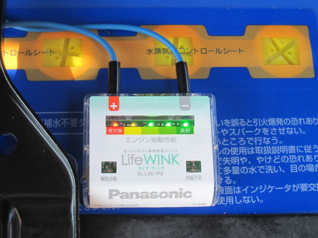同時に「ライフウインク」も取り付けしましたので、画像のようなLEDランプを点検するだけで、現在のバッテリーの状態が一目で分かります。