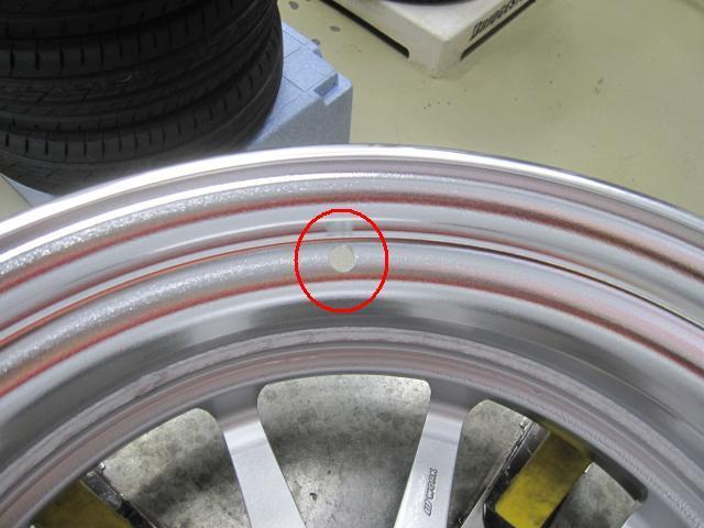 購入時にTPMS加工を依頼すると、裏側に画像のようなセンサー用の穴を加工してくれます。