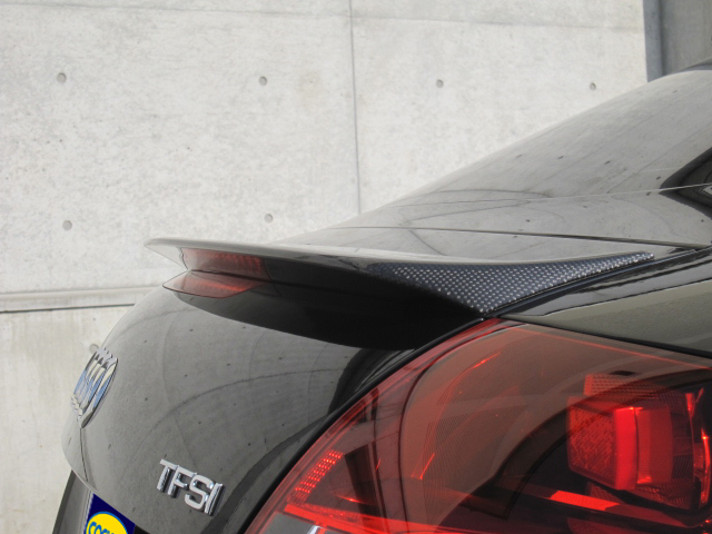 (カーボンのトランクスポイラーは、白濁を防ぐためにUVクリア塗装を施しました)