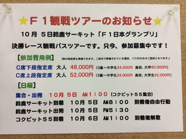 「鈴鹿サーキット F1日本グランプリ決勝レース観戦バスツアー(注1)」