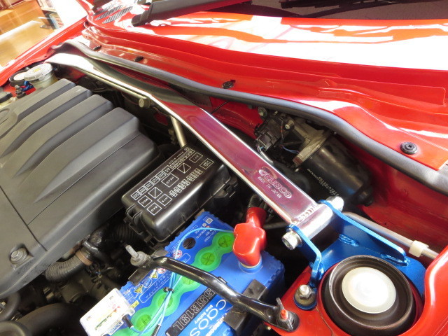 今回は、まずフロントに「クスコストラットタワーバー(オーバルシャフトタイプ)」を取り付け。