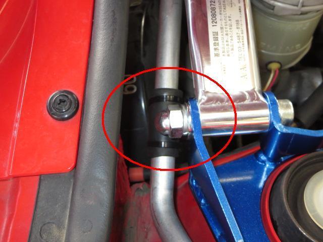シャフトが左右のストラットタワーを(ダンパーの付け根)連結します。