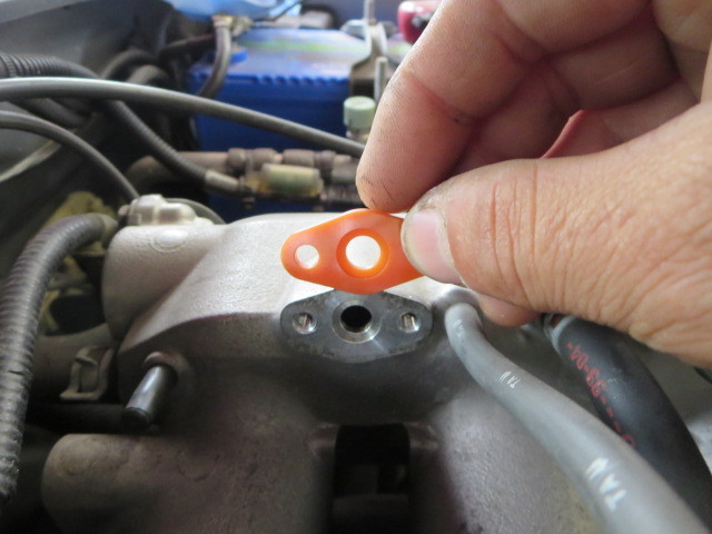 そして最後の作業は、S2000に乗られている方には有名な「吸気温センサー遮熱ガスケット」の取り付けです。