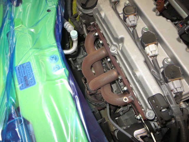 さて作業の方は、純正エキマニの遮熱カバーを外し、細めの純正エキマニを撤去!