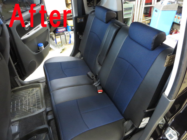 そして最後に取り付けしたのが、お客様が以前からずっと検討していたリアのシートカバー。