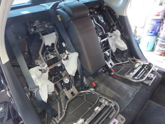 フロントはサクサクッと組み付けできましたが、リアは画像のように電動シートを外す必要があり、