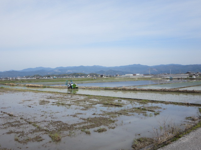 会社のうら一面にある田んぼでは、先日からあちらこちらで田植え作業が始まりました。