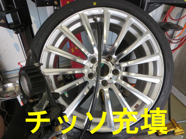 ちなみに作業の方は、タイヤを組み替え後に、空気圧が自然減少しづらいチッソを充填し、