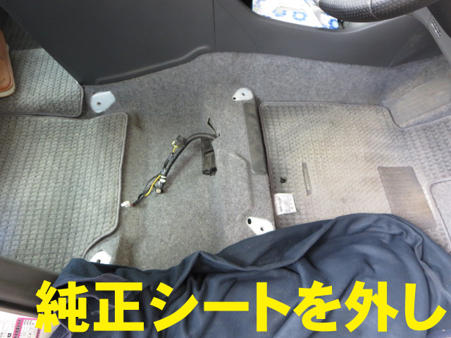 まずは純正シートを外して、サイドエアバックのキャンセラーを取り付け。