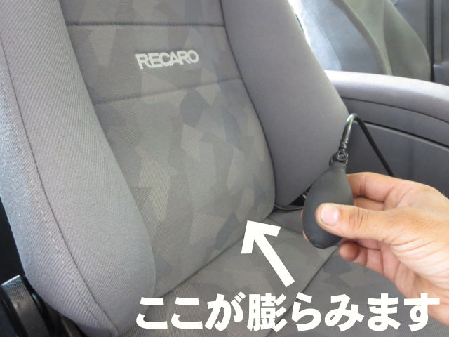 さらに、腰骨の上の部分が手動のエアポンプで膨張しますので、
