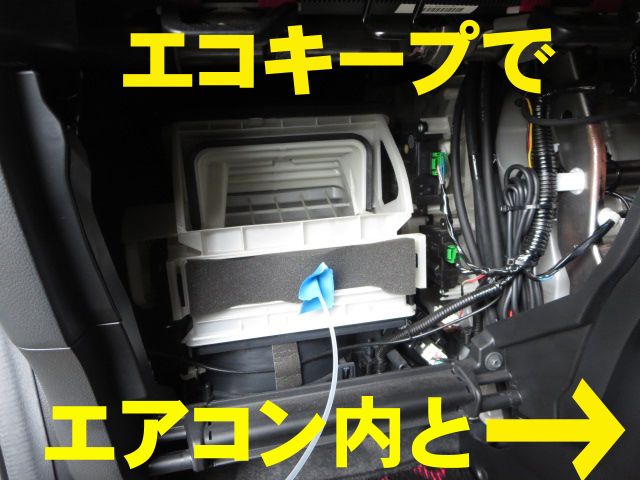 まずは車内の抗菌・消臭に効果がある「エコキープ」から施工開始。