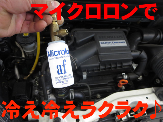 エアコン添加剤「マイクロロン エアコンディショナーフィクス 」を注入。