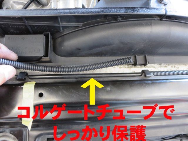 干渉しそうな水のホースを保護したり、ボディと干渉して音が出そうな場所には