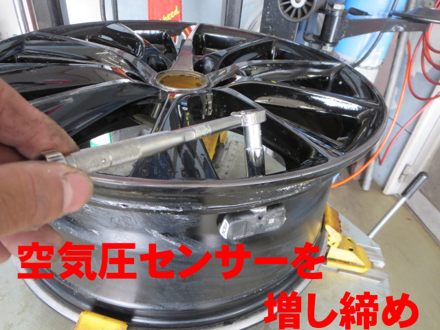 作業の方は、以前取り付けたTPMS(空気圧センサー)の増し締めや、