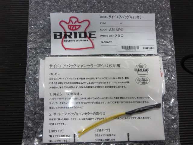 純正シートがエアバッグ内蔵タイプなので、警告灯をキャンセルするために、