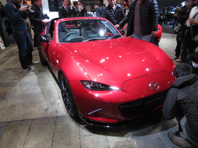 奥に赤いロードスターがチラッと見えているのが、初代ロードスターのレッドカラーで塗装された