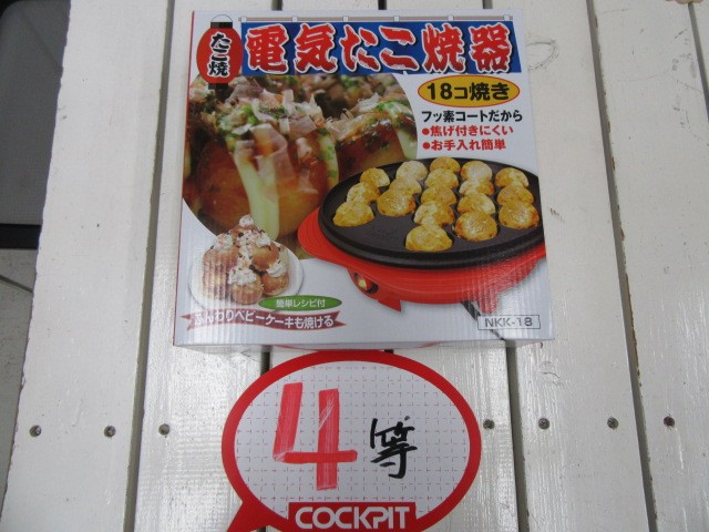 2等グルメ券に、3等エアーソファー、4等たこ焼き器に