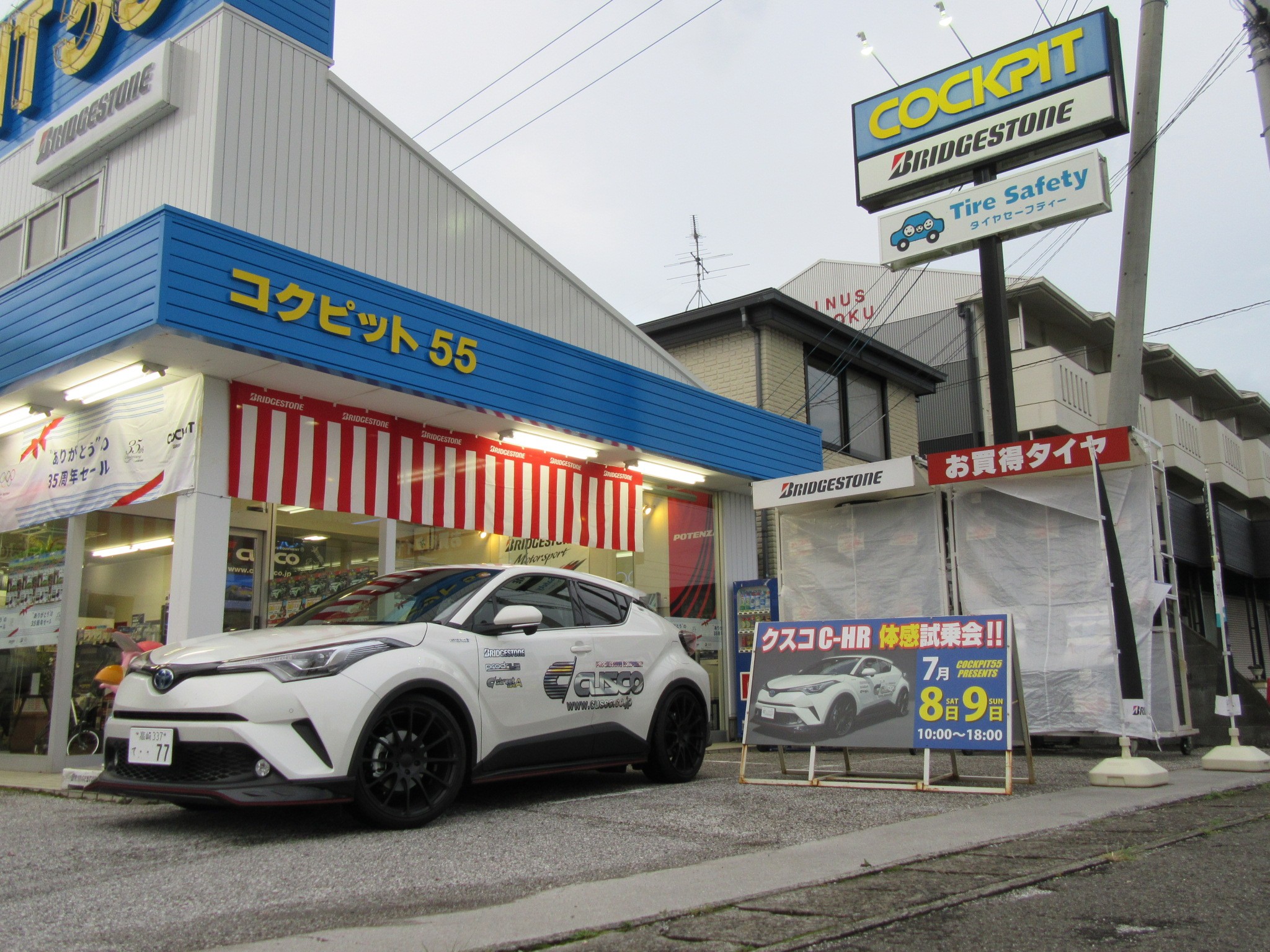 以前から看板でお伝えしていたクスコデモカーの「C-HR」が、本日ついに到着しました!