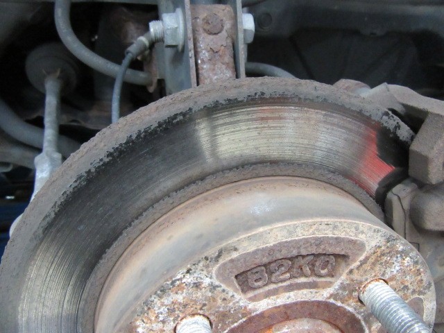 ブレーキローターがさびて、ブレーキパッドとの接触面積がかなり少なくなっていましたし、