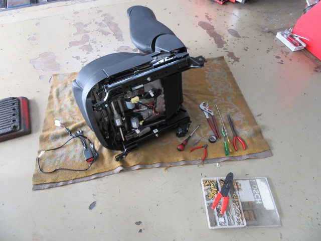 さて取り付けの方は、まず高級感あふれる純正シートを取り外し、