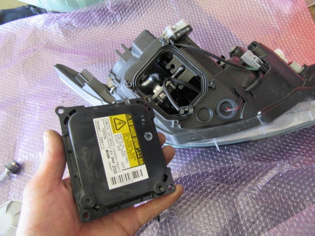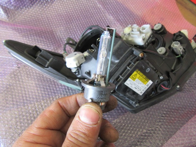 グレーのカバーを外すと、純正HIDバルブが外れます。