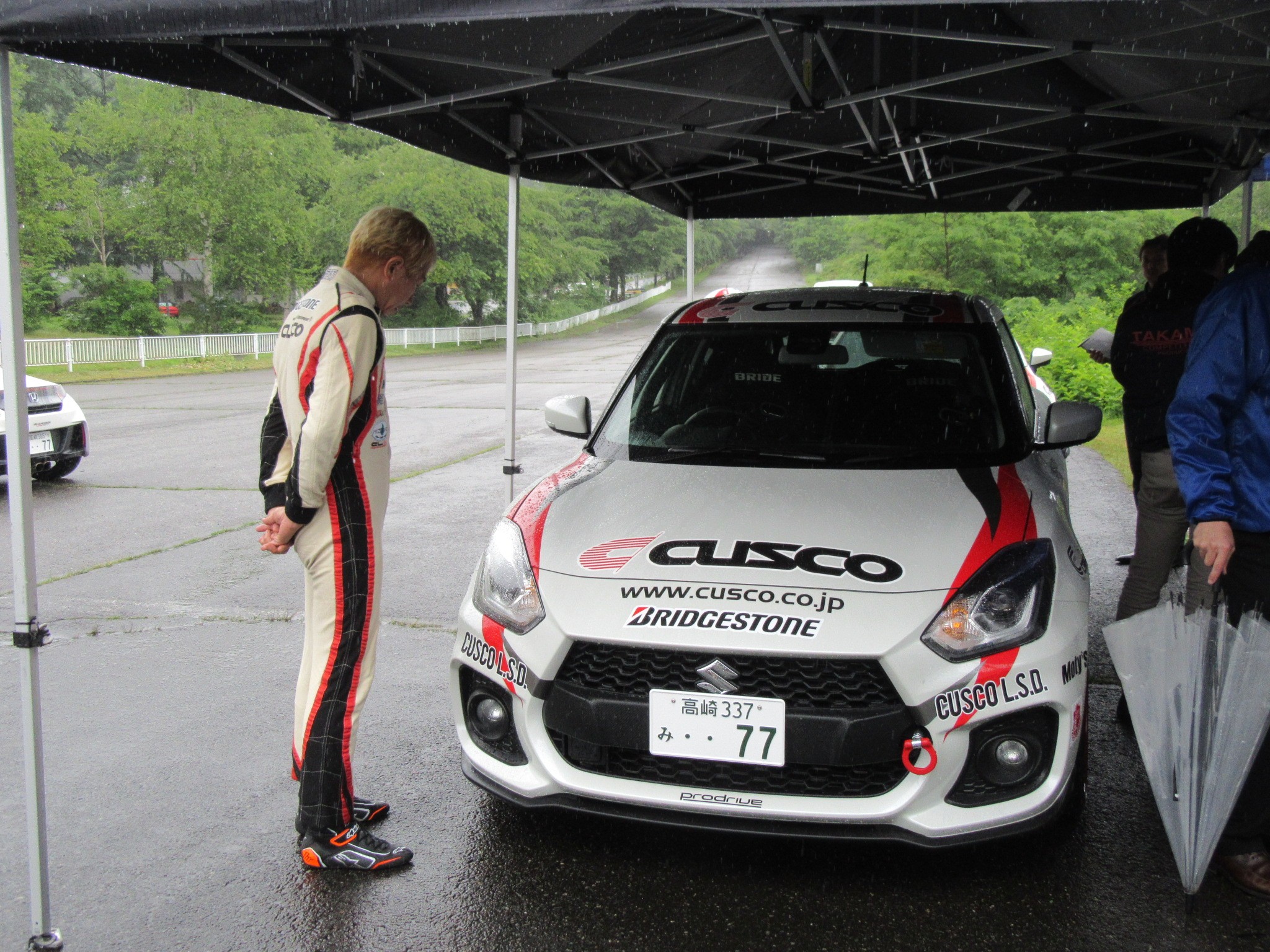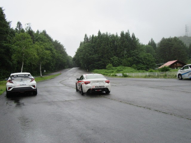 4人のクスコワークスドライバーの横に私達が乗りこみ、各種パーツの比較同乗走行!